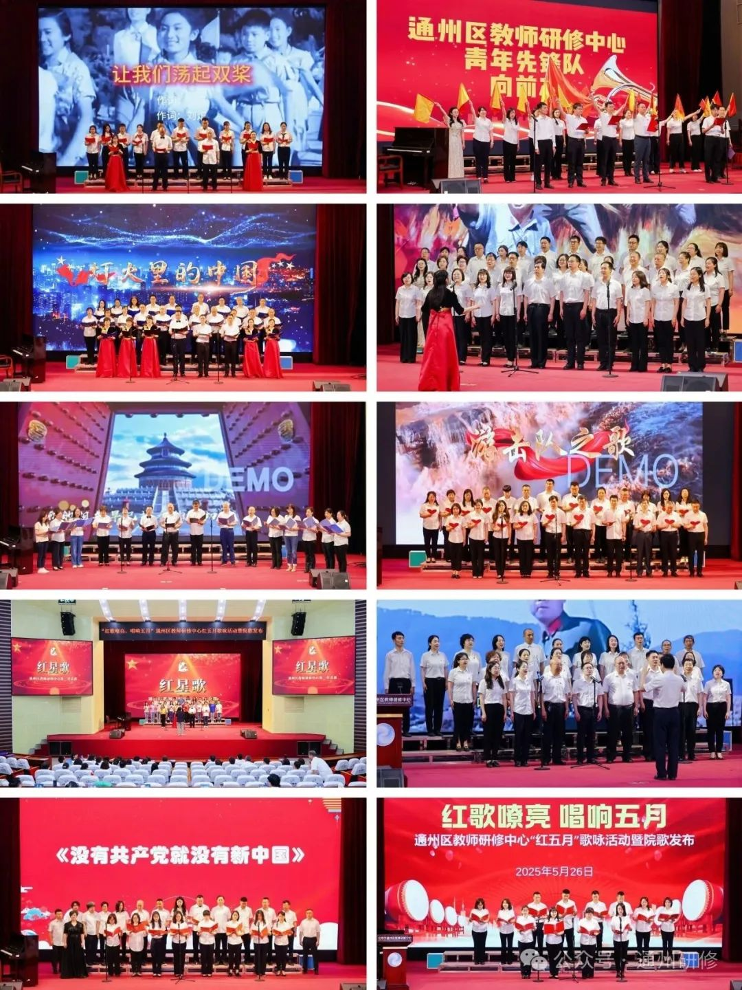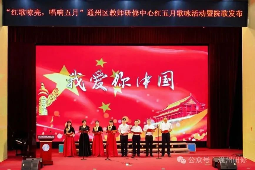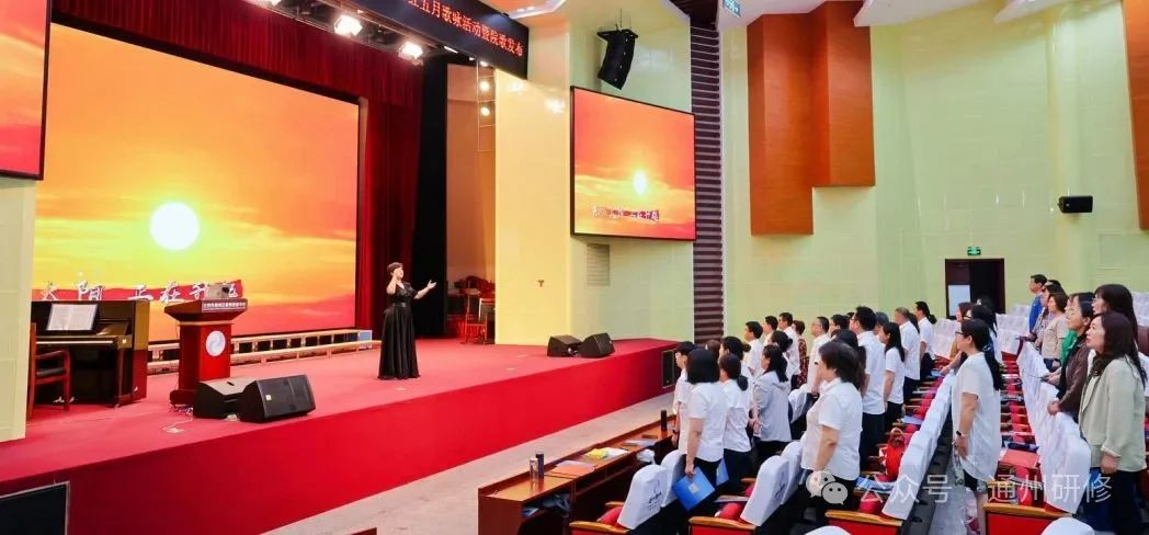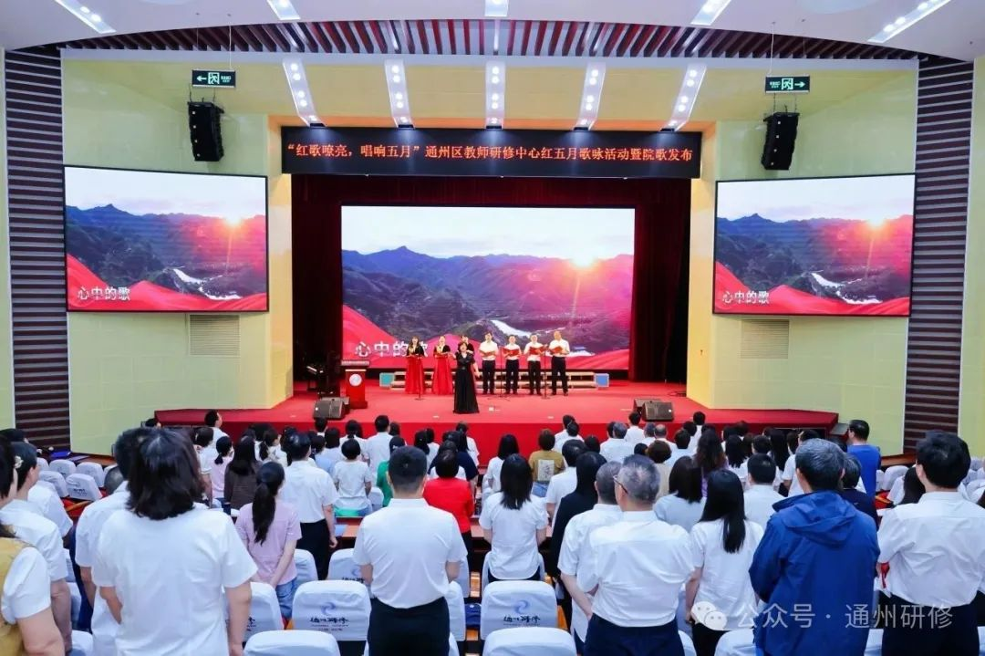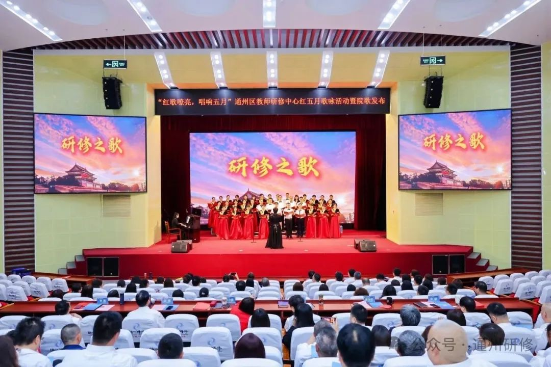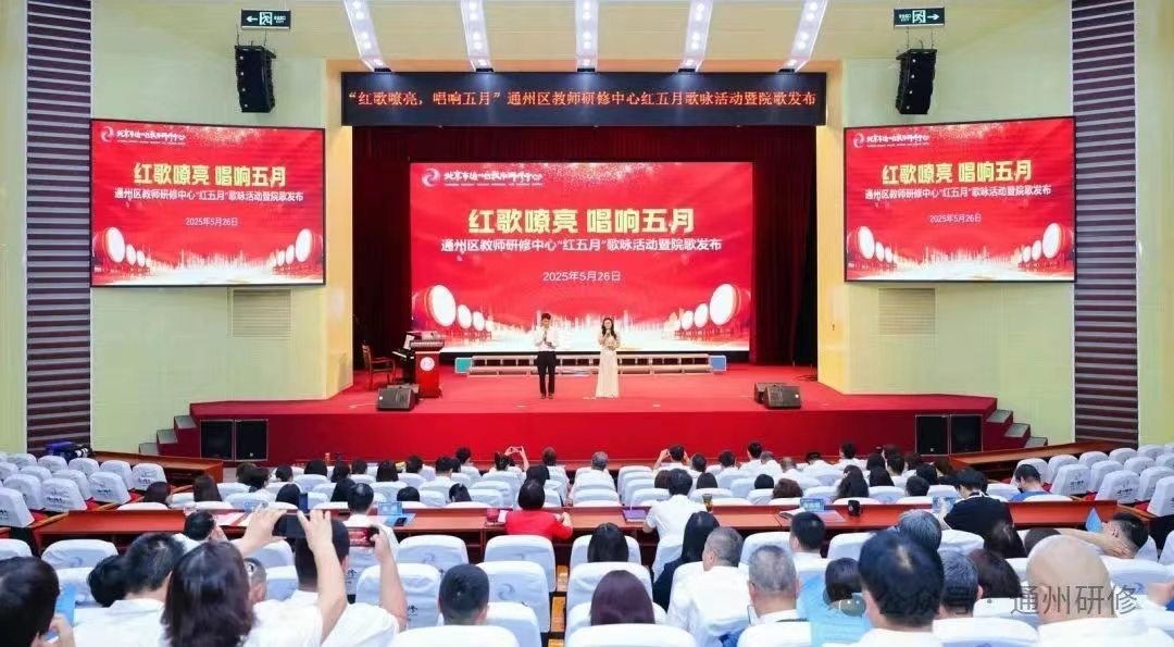 2025年5月26日下午,通州区教师研修中心“红歌嘹亮 唱响五月”红五月歌咏活动暨院歌发布在研修中心报告厅举行。中心(分院)全体教职工以音乐为媒,以信仰为声,共同演绎了一场赓续红色血脉、凝聚中心(分院)奋进力量的视听盛宴。活动由高中部研修员刘丽文老师和教科研部研修员程子昂老师联袂主持。