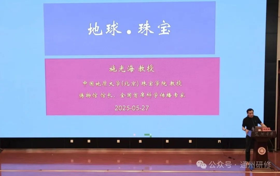 中心(分院)院长孙翠松对运河中学教育集团对本次数学节交流会的统筹策划表示感谢,并对师生提出期望:运用AI赋能,以逻辑思维、逆向思维找到数学的万能钥匙,开启数学学习的大门,感受数学之力,体会数学之美,探寻数学之趣,培养创新之才,为祖国做出贡献。 主会场第二阶段,中国地质大学博物馆馆长、北京市政协委员、中国地质大学(北京)教授施光海,为中学生做题为《地球 珠宝》的专题讲座。
