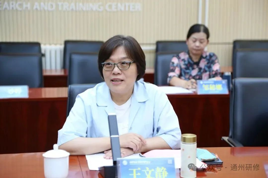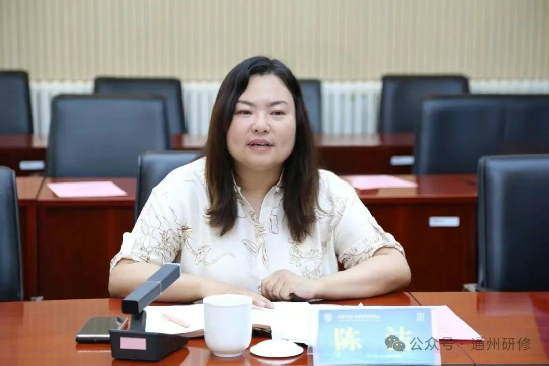 北京师范大学中华文化教育研究院院长王文静在讲话中,深入阐释师德师风建设内涵,赞誉通州区“同心汇智,研修赋能”理念的实践创新价值。她细致点评六所学校的典型案例,从通州区民族幼儿园的“师幼共生”、东方小学的“成长共同体”,到北京二中通州校区的“云端书院”等,肯定各校将文化与师德建设融合的特色实践。王院长充分认可各实验校成果,强调要强化经验总结提炼,把实践转化为可复制推广的案例,并借助北师大专家力量提升文本质量,推动师德建设成果广泛辐射、共享。 通州区委教育工委副书记陈洁主要从三方面进行总结:一是强调文化涵养师德项目以中华优秀文化为引领,能增强教师职业荣誉感,塑造有魅力、懂幸福的新时代教师;二是肯定项目将理论与实践深度融合,通过陪伴式、督导式指导,助力实验校形成特色案例;三是赞赏项目促进区域经验交流联动,期待未来扩大覆盖面,吸引更多优秀毕业生投身通州教育;同时希望北师大持续支持,共同推动通州教育的高质量发展。