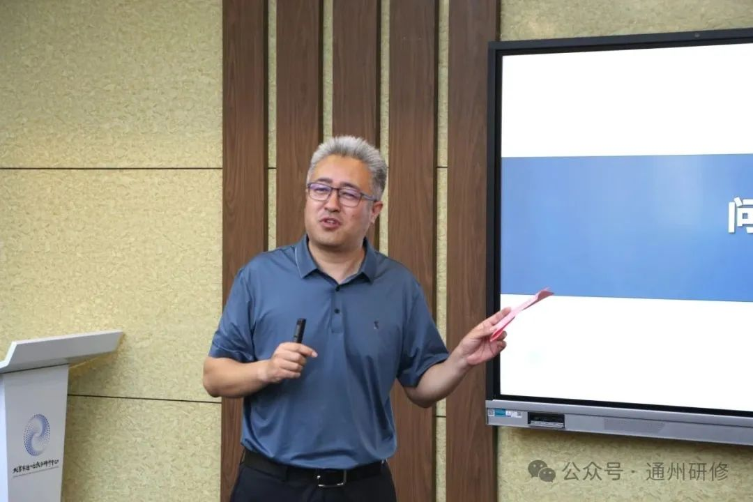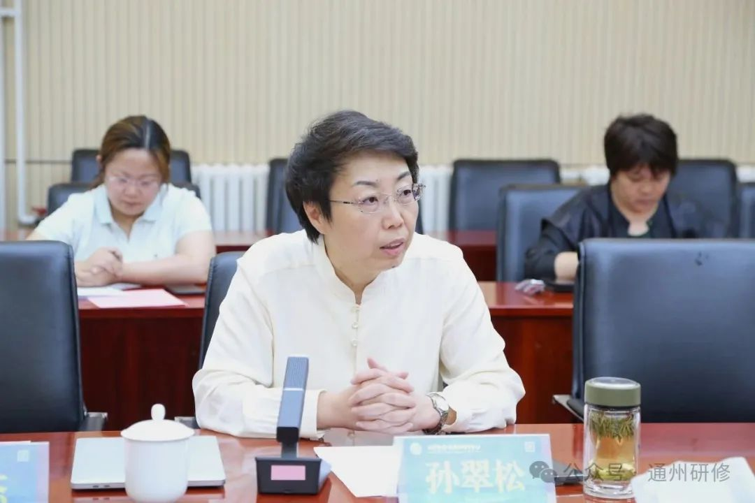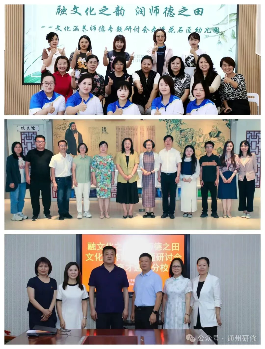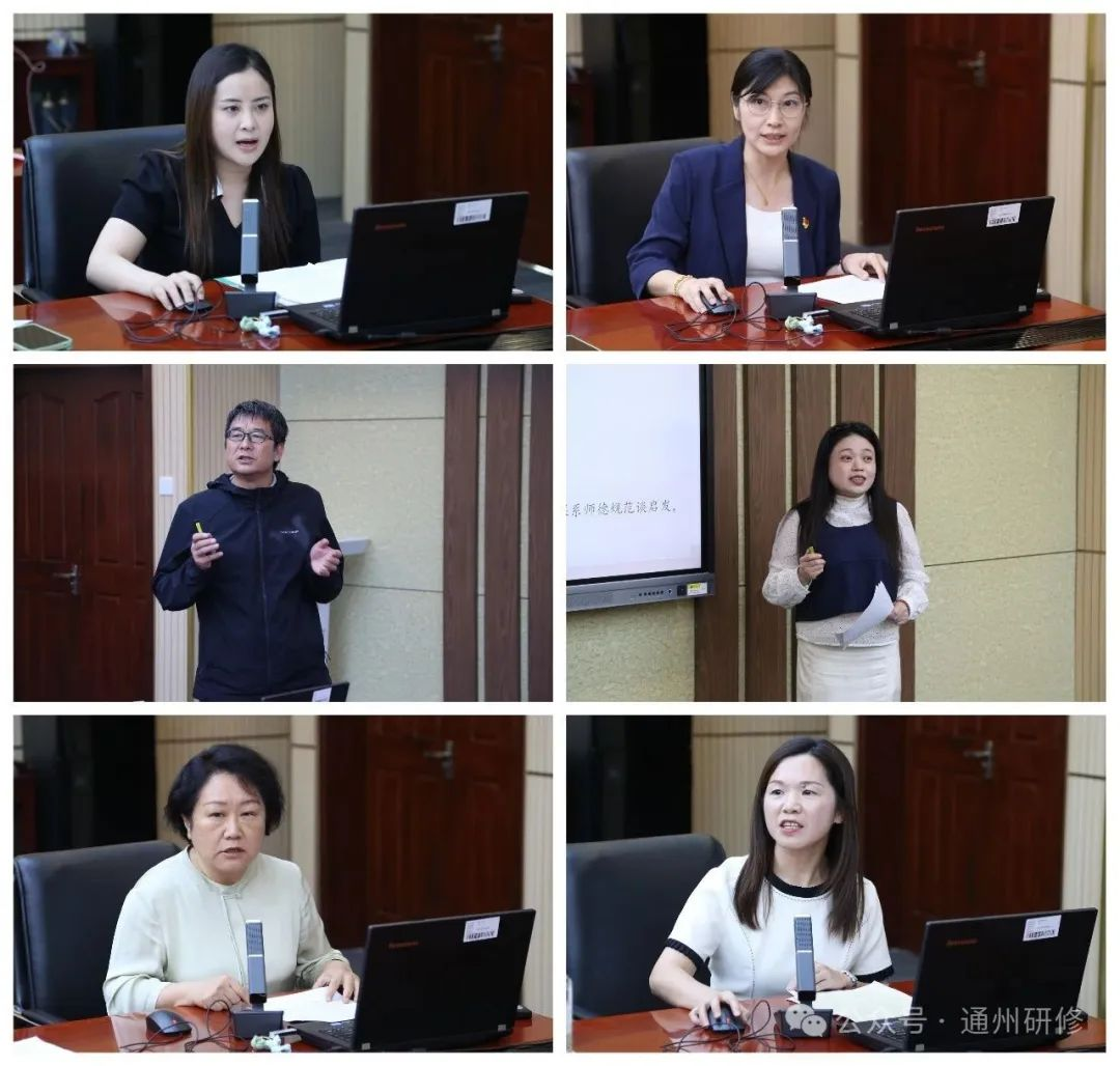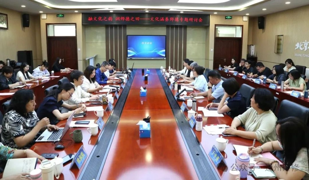 为深化师德涵养建设的实践探索,搭建展示交流的平台,2025年6月4日,教育部师德师风建设基地(北京师范大学)联合北京市通州区教师研修中心举办了文化涵养师德专题研讨会。教育部师德师风建设基地(北京师范大学)负责人、北京师范大学中华文化教育研究院院长王文静,北京师范大学继续教育与教师培训学院中华文明传播中心主任吕文倩,教育部师德师风建设基地(北京师范大学)项目部主任刘丽娟、研修部副主任夏红;广东省中山市教育与体育局熊宗强,教师发展中心杨巧红;通州区委教育工委副书记陈洁、区教委党建科科长丛光峰、人事科副科长马杰;通州区教师研修中心(分院)院长孙翠松、副院长谢海明、师训部主任肖月等领导参加会议。北京教育学院副研究员刘胡权博士作为专家受邀出席。此外,还有来自广东省中山市、北京市朝阳区及通州区10所实验校的干部教师50余人参加活动。